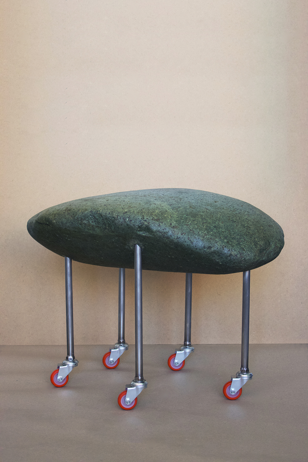 The result is an abrupt change to the course of nature’s erosion. Intervening in this process leads to the decision to change the stone's journey. While afterwards enhancing the stone with the means to continue an alternative path for the foreseeable future.